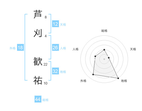 芦刈 歓祐さんを姓名の画数から五運を鑑定