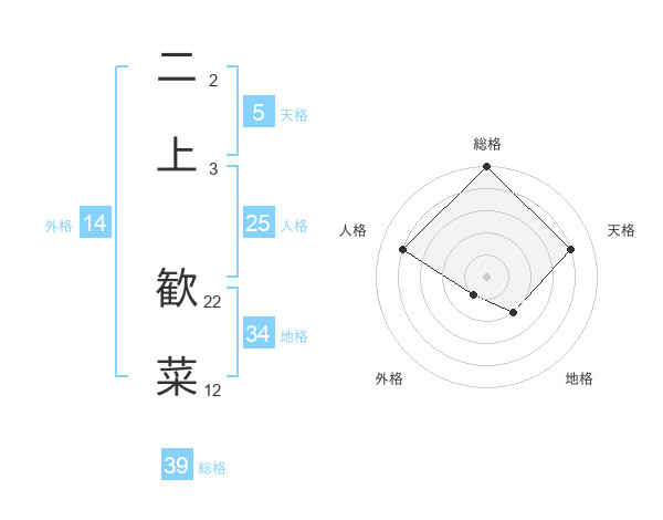 二上 歓菜さんを姓名の画数から五運を鑑定