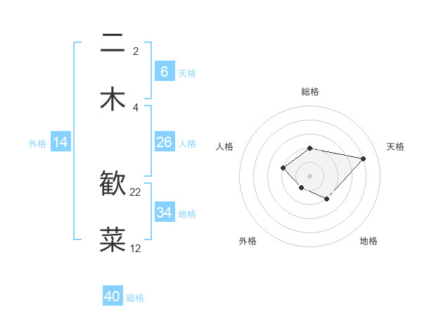 二木 歓菜さんの天格は6画の4点!
