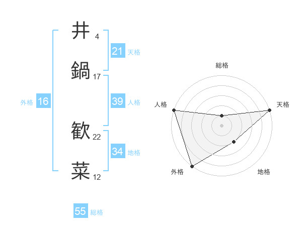 井鍋 歓菜さんを姓名の画数から五運を鑑定