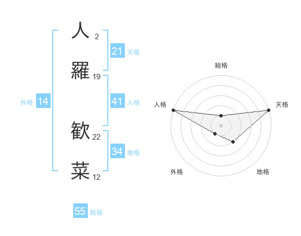 人羅 歓菜さんの総格は55画の1点!