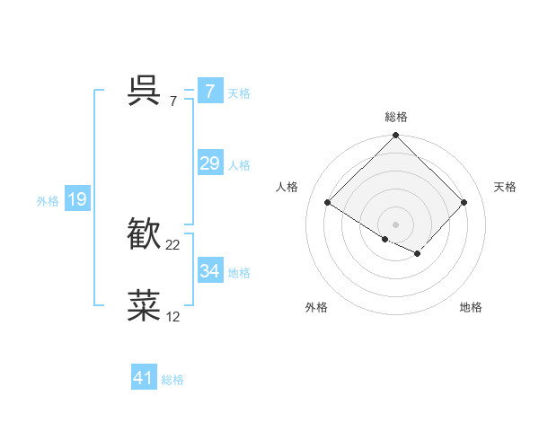 呉 歓菜さんを姓名の画数から五運を鑑定