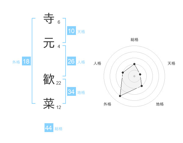 寺元 歓菜さんを姓名の画数から五運を鑑定