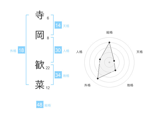 寺岡 歓菜さんの総格は48画の4点!