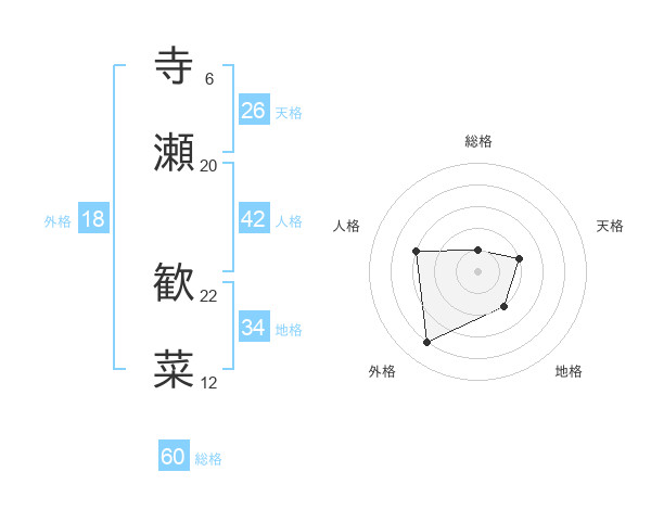 寺瀬 歓菜さんの総格は60画の1点!