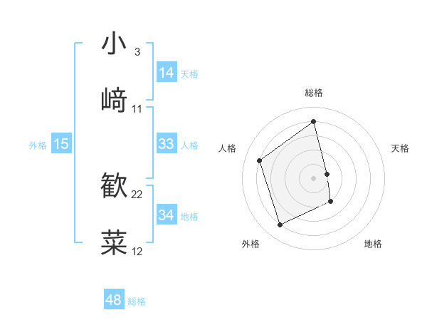 小﨑 歓菜さんを姓名の画数から五運を鑑定