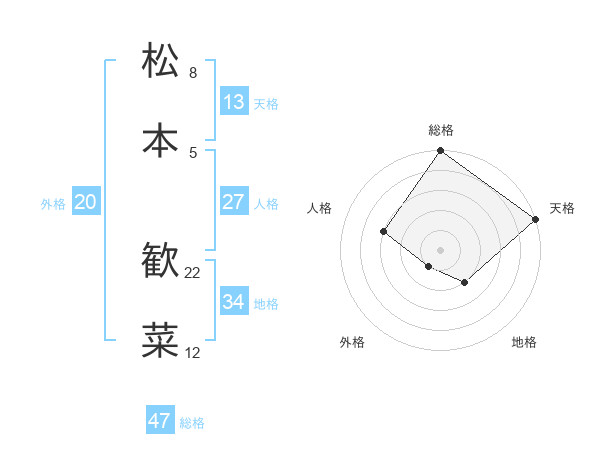 松本 歓菜さんの総格は47画の5点!