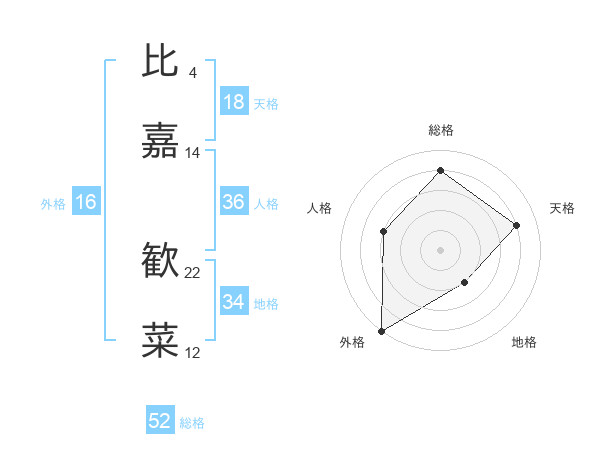 比嘉 歓菜さんの総格は52画の4点!