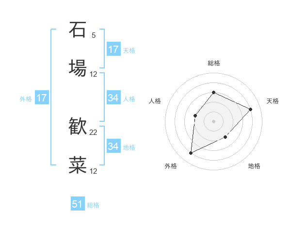 石場 歓菜さんを姓名の画数から五運を鑑定