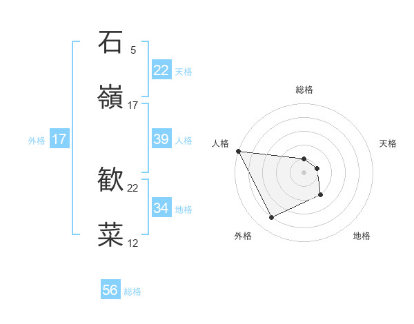 石嶺 歓菜さんを姓名の画数から五運を鑑定