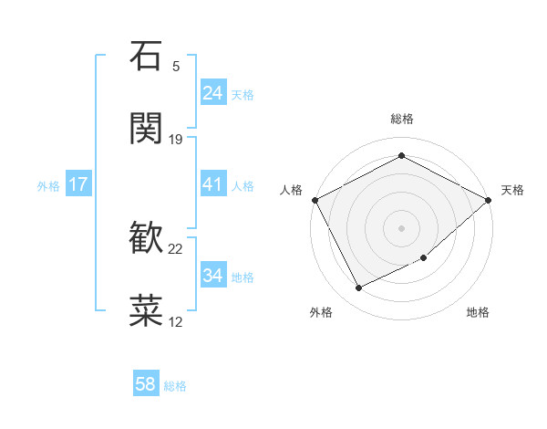 石関 歓菜さんの総格は58画の4点!