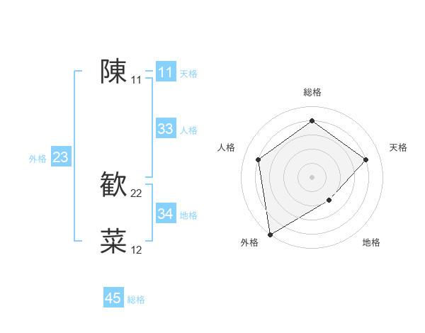 陳 歓菜さんの総格は45画の4点!