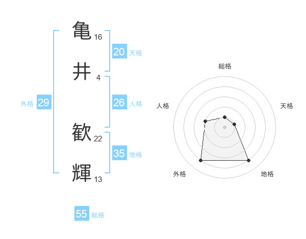 亀井 歓輝さんを姓名の画数から五運を鑑定