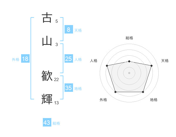古山 歓輝さんを姓名の画数から五運を鑑定