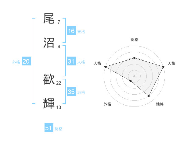 尾沼 歓輝さんを姓名の画数から五運を鑑定