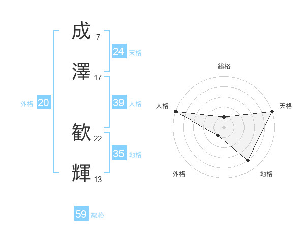 成澤 歓輝さんを姓名の画数から五運を鑑定