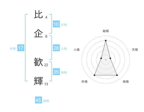 比企 歓輝さんを姓名の画数から五運を鑑定