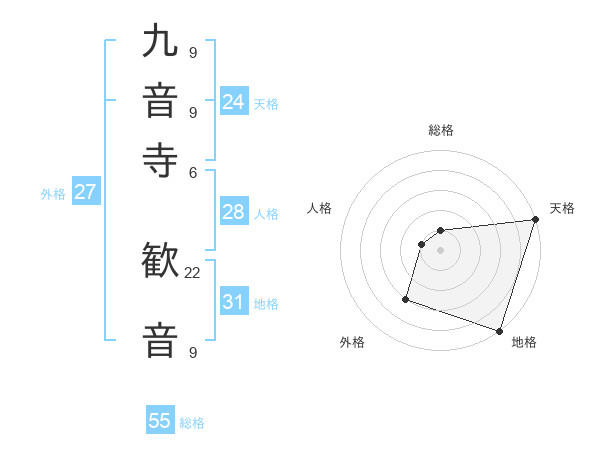 九音寺 歓音さんの地格は31画の5点!