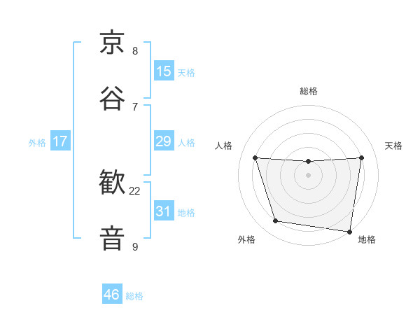 京谷 歓音さんの総格は46画の1点!