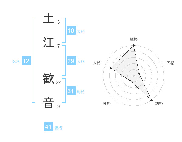 土江 歓音さんの地格は31画の5点!
