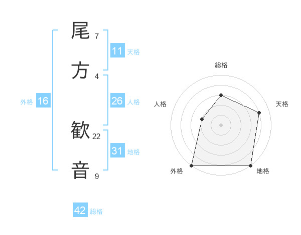 尾方 歓音さんを姓名の画数から五運を鑑定