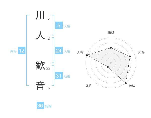 川人 歓音さんを姓名の画数から五運を鑑定