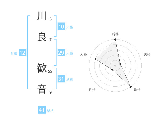 川良 歓音さんの総格は41画の5点!