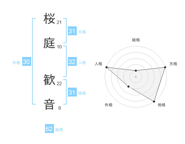 桜庭 歓音さんを姓名の画数から五運を鑑定