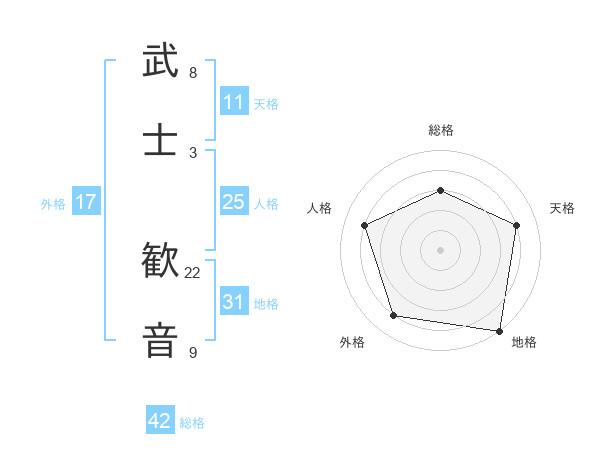 武士 歓音さんの総格は42画の3点!