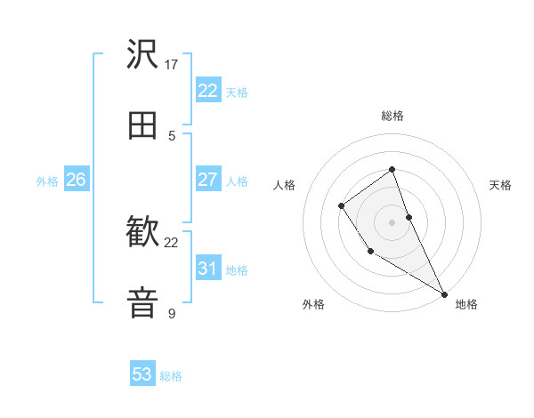 沢田 歓音さんを姓名の画数から五運を鑑定