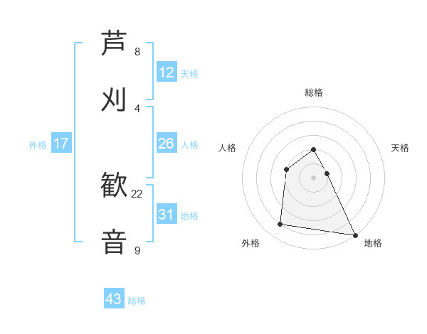 芦刈 歓音さんを姓名の画数から五運を鑑定