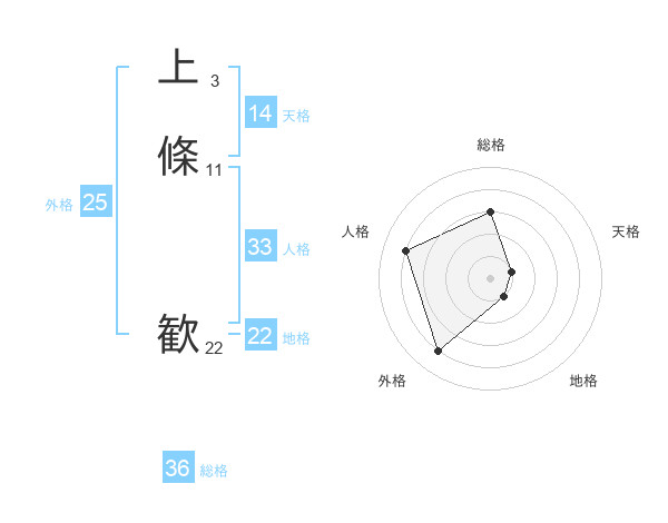 上條 歓さんの外格は25画の4点!