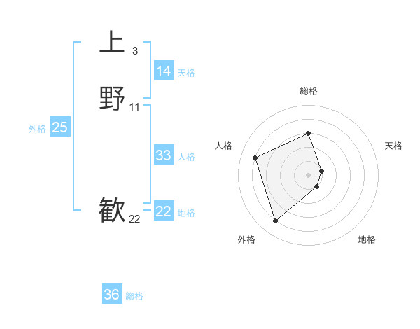上野 歓さんの総格は36画の3点!
