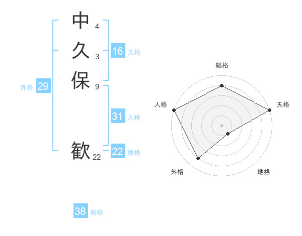 中久保 歓さんの地格は22画の1点!
