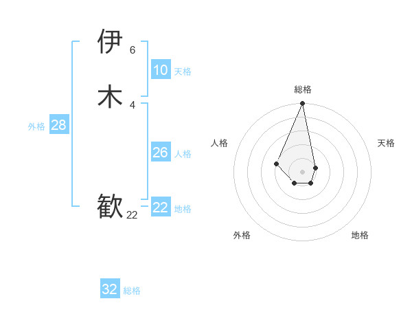 伊木 歓さんの総格は32画の5点!