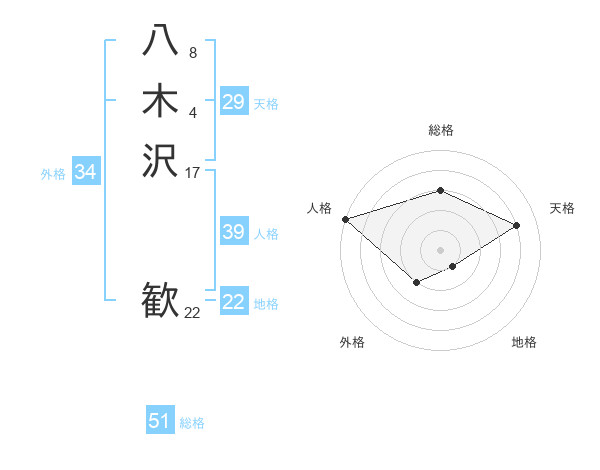 八木沢 歓さんを姓名の画数から五運を鑑定
