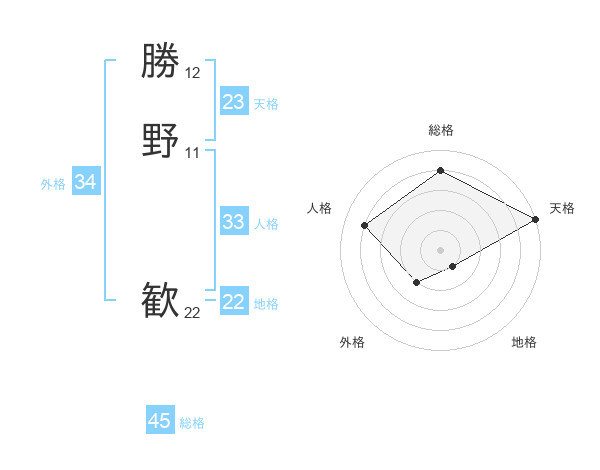 勝野 歓さんの総格は45画の4点!