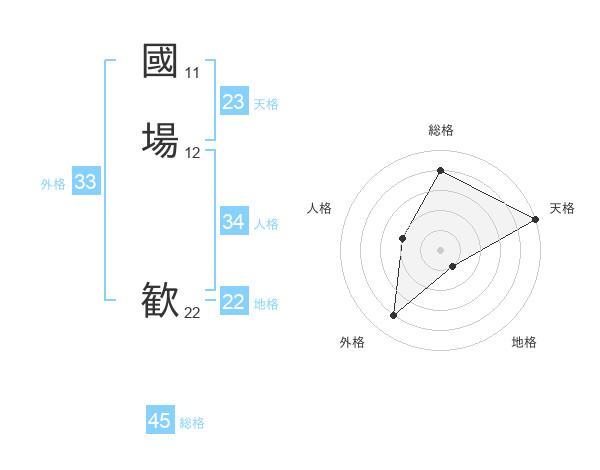 國場 歓さんの総格は45画の4点!