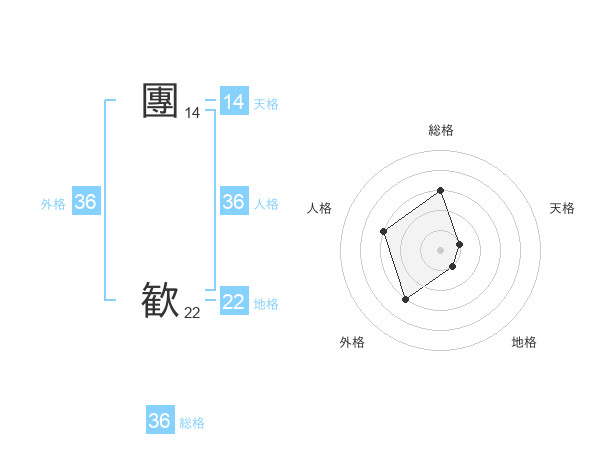 團 歓さんの外格は36画の3点!
