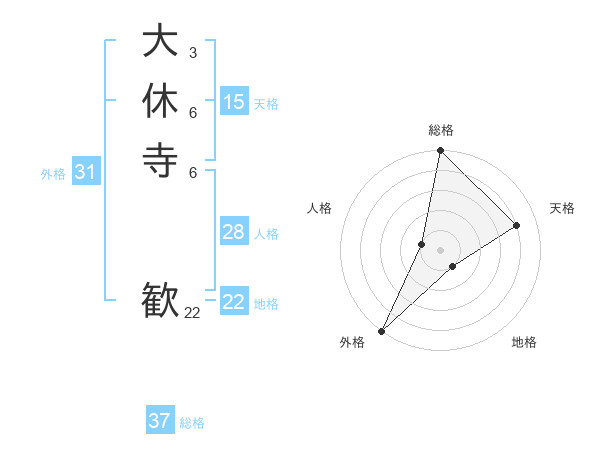 大休寺 歓さんを姓名の画数から五運を鑑定