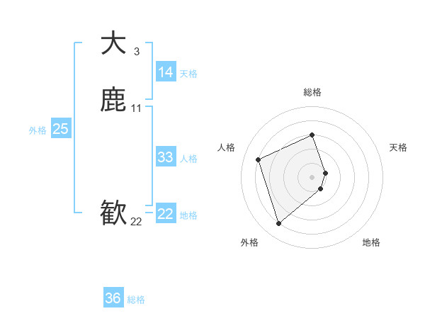大鹿 歓さんを姓名の画数から五運を鑑定