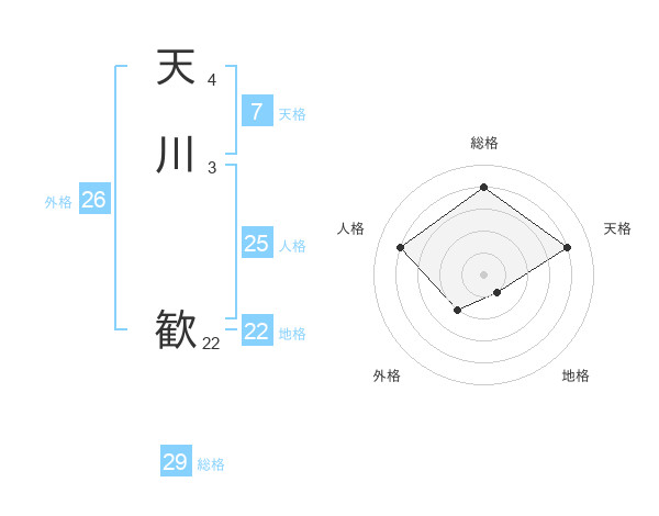 天川 歓さんの総格は29画の4点!