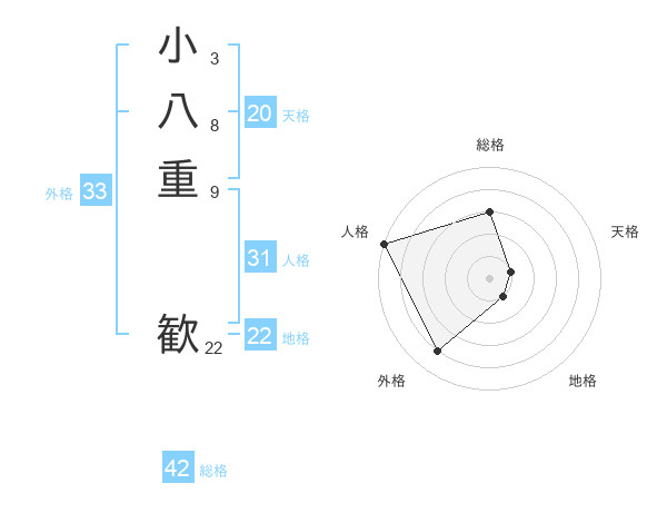 小八重 歓さんの総格は42画の3点!