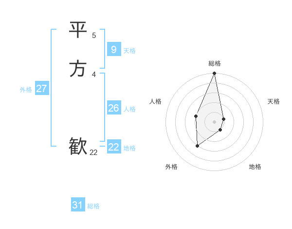 平方 歓さんの総格は31画の5点!