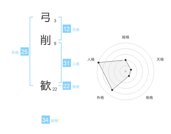 弓削 歓さんの人格は31画の5点!