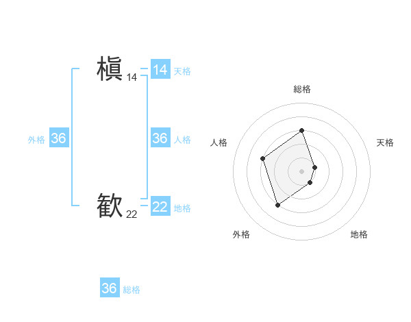 槇 歓さんの総格は36画の3点!
