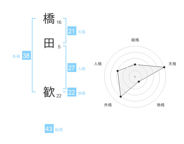 橋田 歓さんの天格は21画の5点!