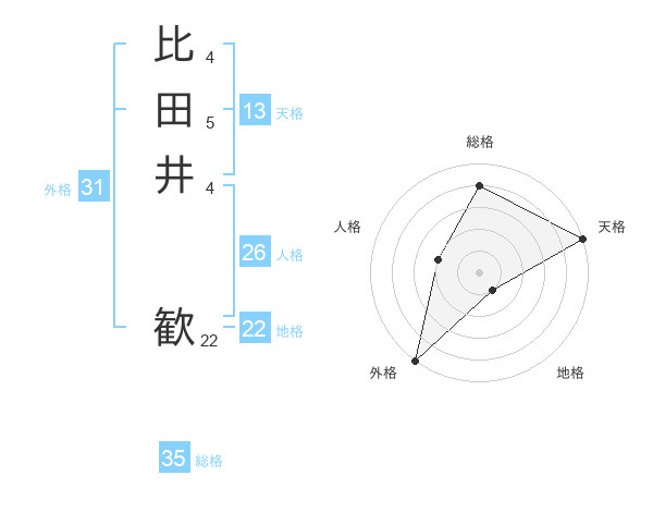 比田井 歓さんの総格は35画の4点!