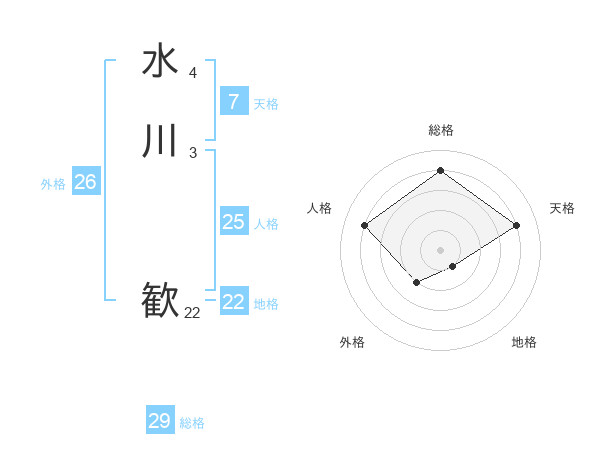 水川 歓さんの総格は29画の4点!
