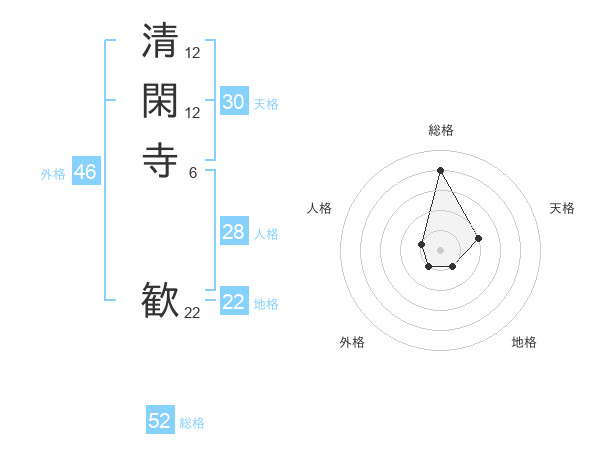 清閑寺 歓さんを姓名の画数から五運を鑑定